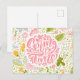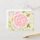 Make a bold seasonal statement with this vibrant “Spring Time” greeting card featuring eye-catching pink hand-lettered typography set within a soft circular badge. Surrounded by a lush, detailed botanical pattern of blooming flowers, leaves, and natural elements.