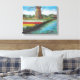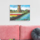 Holland Spring Tulips and Windmill Landscape Painting Canvas Print. Colorful white, yellow and red spring tulips flower in a field and a Dutch windmill with ducks swimming in the canal rural landscape Holland impressionism painting wrapped canvas print. This colorful Holland tulips painting canvas is fully customizable, add your text(s) and images! A unique spring tulip flowers painting gift for your best friend, yourself or family member!