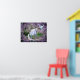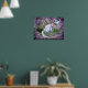 Gently hued unicorn with an similarly colored fantasy bird in spring flowered trees background, delicate shades of lavender poster sized for 24x18