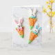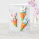 This design shows an overhead view of three soft fabric figures that blend a spring bunny shape with a root-vegetable body, arranged in a loose triangle on a white marble surface with faint gray veins. Each one has a plush white head, long upright ears, tiny black eyes, and a small pink nose, and their close spacing suggests friendly company, like they’ve gathered for a quiet photo together 🐰. Their cone-shaped bodies are matte orange, and the fabric texture reads cozy under bright, even lighting. One figure wears a pink bow tie with matching pink inner ears, while the other two wear light blue bow ties with matching blue ear linings, creating a gentle color contrast 🐇. The orange bodies are dotted with small white pieces and a few pale pink accents, scattered unevenly to mimic natural speckles. There is no printed wording in the scene, leaving the marble background open and uncluttered around the trio. The marble’s subtle gray veining runs diagonally beneath them, and the soft shadows fall close to each figure’s base.