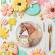 Cute birthday party paper plate featuring a horse celebrating spring. Customize this product by adding your party information.