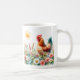 Mug featuring a watercolor Hen in a spring landscape. Customizable.