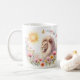 Mug featuring a watercolor Lion in a spring landscape. Customizable.