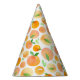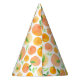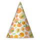 Bright and colorful party hats featuring watercolor peaches. This party hat is perfect for spring and outdoor birthdays and other celebrations.