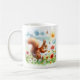 Mug featuring a watercolor Squirrel in a spring landscape. Customizable.