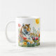 Mug featuring a watercolor Tiger in a spring landscape. Customizable.