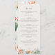 This menu has peach and pink watercolor wildflowers and leaves. The copy is editable and the font can be changed. The back has a matching pattern. Great for spring weddings!