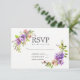 Purple and pink roses and peonies floral wedding RSVP cards with accents of coral, plum and sage green.
