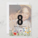 This charming table number adds a touch of natural beauty to your wedding tables. Featuring a delicate watercolor illustration of a wildflower meadow, this sign creates a sense of romance and elegance. The elegant script font and soft color palette complement the floral design, making it a perfect choice for spring and summer weddings.