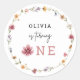 Spring Wildflower Is Turing One 1st Birthday Invit Classic Round Sticker