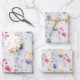 Elegant boho-inspired wrapping paper sheets adorned with soft pastel watercolor wildflowers in hues of blush, pink, blue, lavender, yellow, and green.