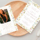 Plain white envelopes are included with paper invitations and will come to fit the invitation size you select. If you don’t need the envelopes, you may choose to not receive them by selecting the dropdown below "Envelopes" and choosing "None." If you’d like to have a design on your envelopes, you can browse all of these available envelopes to find the design that complements your Spring Wildflowers Boho Photo University Grad Invitation.