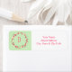This address label features a pink floral wreath on a pale green background. Personalize with your monogram and address.