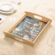 This is a well made, sturdy wooden tray with a flawless black finish and lovely map on the tray surface. It is both vintage & modern at the same time. Looks exactly like the photo; does not disappoint. So nice to find something of quality individually made and not the mass-produced 'shabby chic' merchandise seen in stores. I am so pleased to be able to give this to my college-age niece for her birthday. This can be used as a tray to hold jewelry or toiletries, or hung on the wall as art. The map surface is sealed (it is slightly shiny) so would be moisture resistant. It is well worth the asking price but I was able to apply a sale code as well. Very happy with my purchase. Map is crisp & clear and sealed with a water-resitant finish.