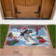 Springer Spaniel Running Snow with Christmas Hat Doormat