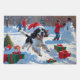 A cheerful Springer Spaniel runs happily through the snowy winter scene, wearing a festive red Christmas hat. This lively design highlights the breed’s long ears, athletic build, and affectionate nature while capturing the warmth and joy of the holiday season. A heartwarming winter moment full of festive charm.