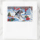 Springer Spaniel Running Snow with Christmas Hat Rectangular Sticker