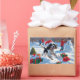 A cheerful Springer Spaniel runs happily through the snowy winter scene, wearing a festive red Christmas hat. This lively design highlights the breed’s long ears, athletic build, and affectionate nature while capturing the warmth and joy of the holiday season. A heartwarming winter moment full of festive charm.