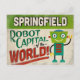 A funny Springfield Missouri vintage travel postcard featuring a friendly robot with fun retro style text that says, "Springfield, Robot Capital of the world!"
