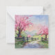 Celebrate the joy of spring with this notecard featuring a watercolor scene of cherry blossoms in full bloom. Delicate pink petals scatter a gentle pathway, flanked by a quaint wooden fence, under a sky painted with soft hues of blue and pink. This artwork captures the fleeting beauty of springtime blooms and inspires feelings of warmth and renewal. Perfect for any occasion, this card is a wonderful way to convey joy and beauty.