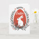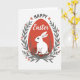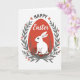 This card features a white bunny in profile, tucked into a large reddish-orange oval that feels like a gentle hug 🐰. The bunny’s round dark eye and soft curve of its cheek give it a tender, friendly look, like it’s quietly leaning in toward someone close. Around the oval sits a wreath of charcoal-gray leaves and branches, arranged in a neat circle that frames the scene without crowding it. Small coral-red blossoms dot the foliage like little sparks of affection, adding warmth that echoes the orange center 🌷. Near the top, uppercase lettering is set in a straightforward style, spaced evenly so it reads clearly against the white background. A second line of text appears across the orange oval in a flowing, cursive-like style, standing out in a contrasting light color. A faint shadow under the bunny grounds it on the page, while the crisp white background keeps the orange oval, gray wreath, and coral flowers sharply defined.