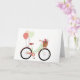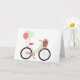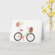 Lovely springtime bicycle with balloons and tulips in the basket. Warm air and sunshine. Pretty color theme.