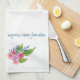 Springtime floral features a light, elegant floral design. This delightful hand towel will brighten up your kitchen. The flowers and leaves have a soft, watercolor look and the script text reads 'happiness blooms from within' can be customized with your own phrase or a name. This towel is designed so you can see the flowers and text whether it's folded in half or quartered.