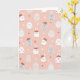 This card features a repeating pattern on a blush‑pink background, filled with sweet little birds and long‑eared bunnies 🐰 that look outward with gentle smiles and a friendly, close-knit feel. Some of the birds wear small flower crowns in coral and muted green, as if they’ve just been gifted by a caring companion. The bunnies have soft, rounded shapes and calm eyes, and a few also wear floral garlands that suggest a tender exchange between friends. Scattered between them are decorated egg shapes with tiny grey-and-white dots, plus pastel stripes and chevrons that keep the scene lively without getting loud. Small blossoms in creamy white with touches of soft red drift across the background like petals carried on a light spring breeze 🌷. There is no visible text on the front, leaving the pattern to do all the talking with its gentle colors and affectionate character pairings. The overall look stays in light pink, crisp white, and gentle grey, with coral and green accents repeating across the eggs, crowns, and tiny flowers.