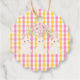 Pink and yellow gingham with flowers and rabbits favor tag