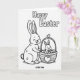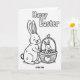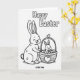 Designed with simple black line art on a bright white background, this Easter-themed card shows a long-eared animal with closed eyes leaning close to a striped woven basket in a gentle, caring pose 🐰. Inside the basket sits a smaller long-eared creature with a wide smile and a tiny bow, looking up as if enjoying the attention like a close friend. A heart emblem is centered on the basket’s front, and several smooth egg shapes fill the basket around the little character. A small bird rests on top of the curved handle, watching the pair and adding a light spring touch 🌷. Across the top, large outlined lettering spells out a festive Easter greeting in black. Near the bottom, a smaller line of black text invites the viewer to add their own colors, leaving plenty of open space around the scene. The basket’s stripes, the heart badge, and the bird perched on the handle stand out clearly against the white background.