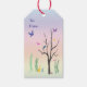 This pack of pretty gift tags creates a colorful, whimsical spring mood. Birds are flying and are perched in the tree. Butterflies hover in the warm air. Ducks waddle in the grasses. There are even tiny snails under the trees.