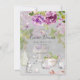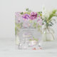Pretty pink floral easter invitation featuring beautiful purple peonies flowers with a the sweetest bunny rabbits set on a stunning gray background with a coordinating back.