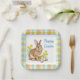 The design showcases an illustration of a wild rabbit, colorful Easter eggs, and cheerful daffodils, along with a "Happy Easter" message. The artwork is presented on a white background, bordered by a pastel pink, blue, and yellow spring plaid pattern, ideal for adding a celebratory element to your Easter event. For a coordinated look, explore the matching tear-away placemat within the Easter store category, specifically under party supplies.
