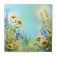 Springtime Wildflowers In Soft Blue Ceramic Tile