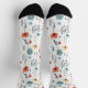 Springtime Wildflowers Pattern, Rust, Tan, Blue Socks