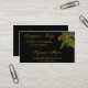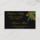 This elegant business card is perfect for your candle making, food jar label, or other DIY project. The background is black and in the upper right corner there is a graphic of two pine cones in gold with the pine needles in a rich spruce green.