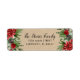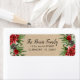 Red poinsettia, pinecones and spruce tree sprigs on a kraft paper textured graphic background. Rustic farmhouse style Christmas return address labels featuring an easy to customize script calligraphy name template and address template in black. A cute, whimsical touch for your Christmas cards and invitations.
