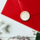 Before the wax hardens, gently and evenly press the wax seal stamp into the melted wax, ensuring it's centered.
