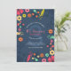 Small, colorful, flowers light up the navy blue background in this cute floral invitation. Perfect for a garden party or a little girl's birthday celebration. (<a href='https://www.freepik.com/free-vector/wedding-invitation-with-flowers-in-flat-style_2003046.htm'>Designed by Freepik</a>). <br/><br/>The card is easy to customize with your wording, font, font color, paper shape options and choice of six paper types.<br/><br/>Not exactly what you're looking for? All our products can be custom designed to meet your needs at no extra charge.<br/><br/>Simply contact us at heartfelthelper@gmail.com.<br/><br/>Coordinating products available: Just ask us!