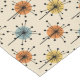 A mid century modern pattern with geometric shapes of colorful abstract flowers and sputnik starbursts.