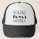 Cat lady in training? Our super cute trucker hat puts your #squadgoals on display, with five black cat silhouette illustrations and "squad goals" in black and aqua typography. Perfect for cat rescuers, cat lovers and trendspotting pop culture enthusiasts.