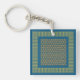 A square, acrylic Keychain, with a mix'n'match pattern of little red and green hearts and blue and green check gingham.