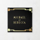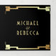 Square Art Deco Frame Black Gold QR Code Wedding Tri-Fold Invitation