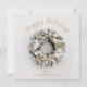 Square business holiday greeting cards feature a beautiful snow flocked pine wreath decorated with white and gold Christmas tree ornaments and flowers on the front along with a greeting and company name. Personalized message on the back on a green background. ***SQUARE SIZE REQUIRES EXTRA POSTAGE - mail in 5" x 7" envelope for regular rate postage. Be sure to double-check your order before adding it to your cart as what you see on the screen is what will be printed. The Live Design Service can help you with your design layout if needed.