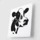 Square clock shown with a white background with a cute cow print. Customize this clock or buy as is.
