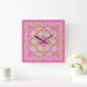 Square Clock: Pink: Primroses, Polka Dots, Gingham Wall Clock