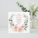 Square Copper Peach Pink Floral Wreath Wedding Invitation