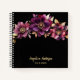 Square Elegant Purple Golden Floral Black Notebook with your costomized text like name, title or company.