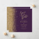 Square Dark Purple Gold Glitter Save the Date Announcement