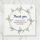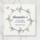 Charming square gift tag with a soft floral wreath of leaves and branches. Personalize the front with name, date, and “First Communion,” and edit the thank-you note on the back ideal for favors, gift wrapping, or meaningful keepsakes.